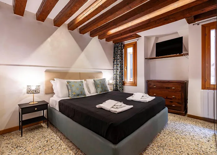 Das 1-Zimmer-Apartment befindet sich im Viertel San Marco von Venedig, in nur 600 Meter Entfernung von der Rialtobrücke. Die Apartments liegt in unmittelbarer Nähe vom Palazzo Vendramin-Calergi in Venedig. Die Ferienwohnung 1 Minutes San Marco Square - Karin House ist ebenfalls in einer Entfernung von 5 Minuten zu Fuß vom Acqua Alta Book Shop gelegen.